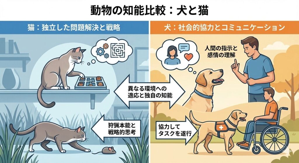 猫と犬の知能を比較すると、それぞれが異なる環境や役割に適応するために独自の知能とスキルを発展させてきたことがわかります。
