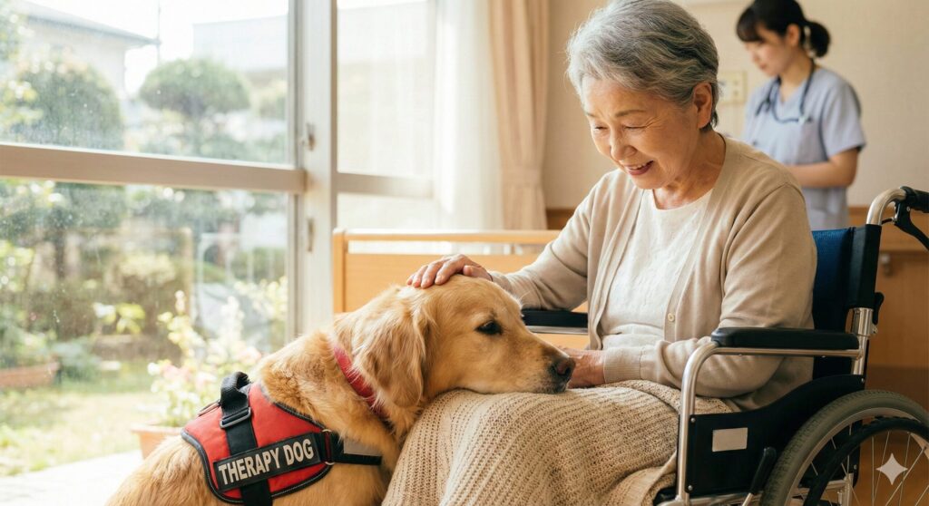 一方、セラピードッグとしては、人間の心理的な不安やストレスを感じ取り、穏やかな接触や行動で心を癒すことが期待されます。